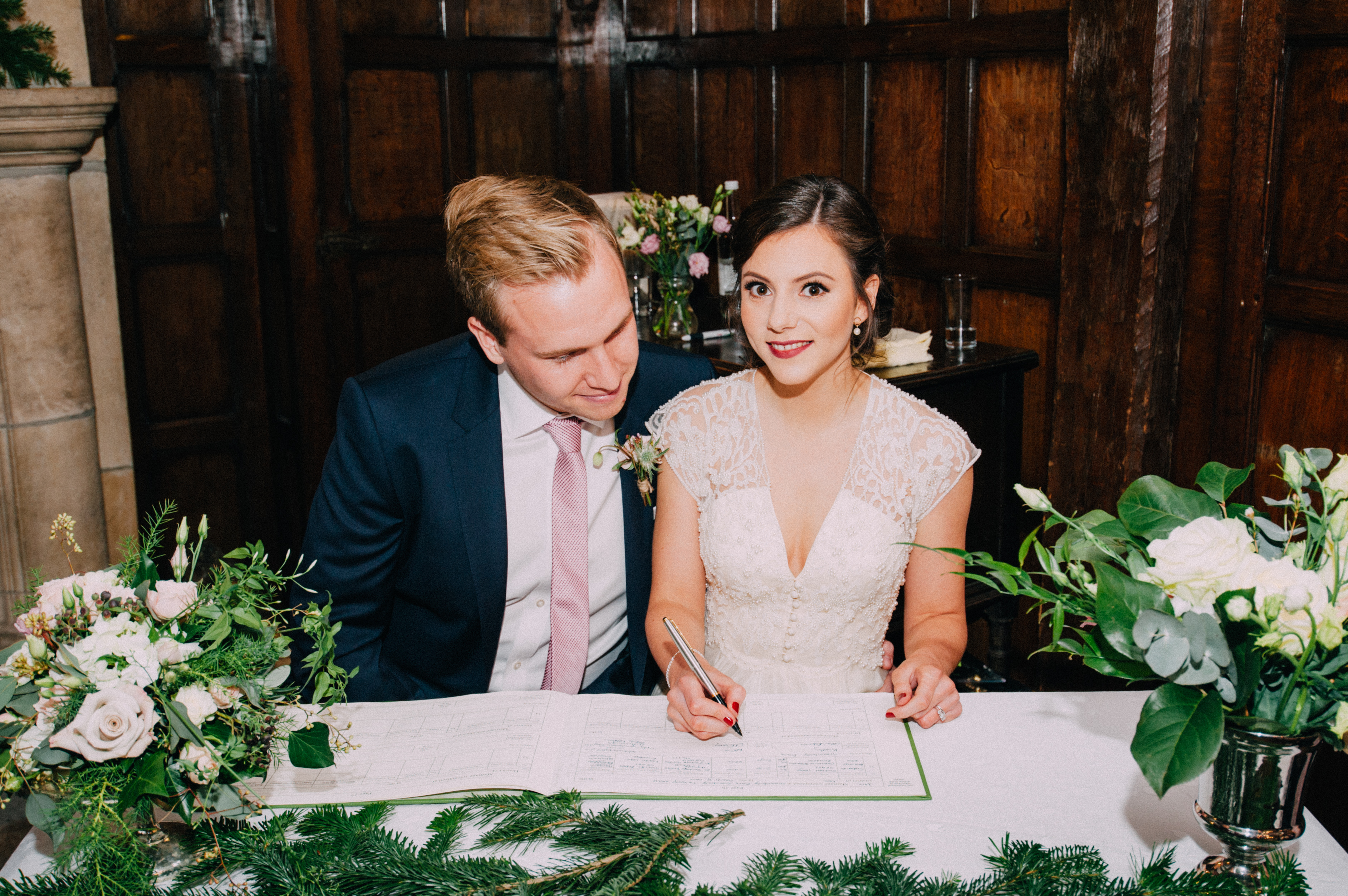 Catherine and Mike’s wedding took place just before Christmas at the amazing Groombridge Place. It was like someone had transported Downton Abbey to the Forest Moon of Endor. Giant sequoias, immaculately landscaped gardens complete with moat and an inquisitive peacock lent the venue a mythical feel. Catherine and Mike were so lovely, and so very excited to be getting married!