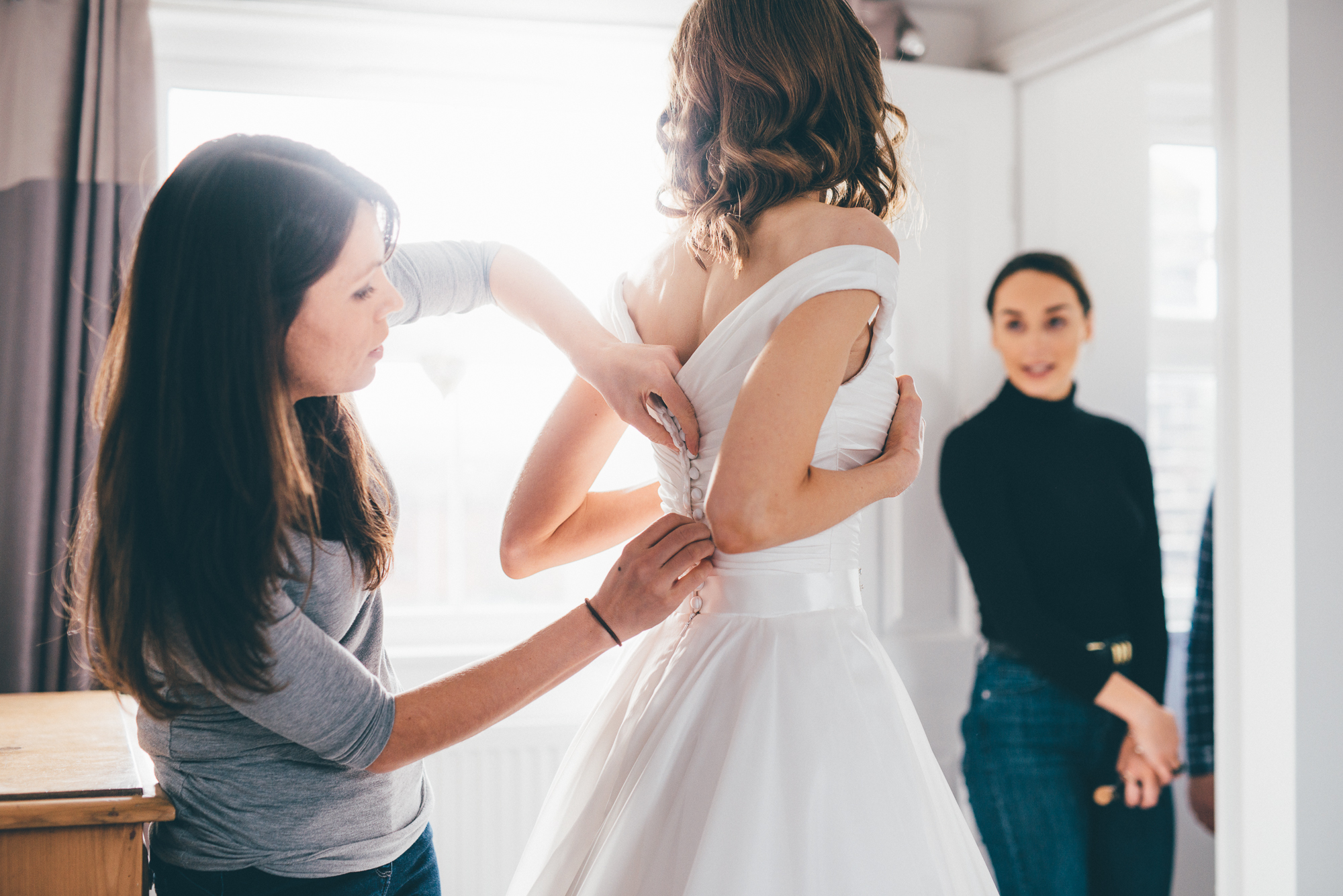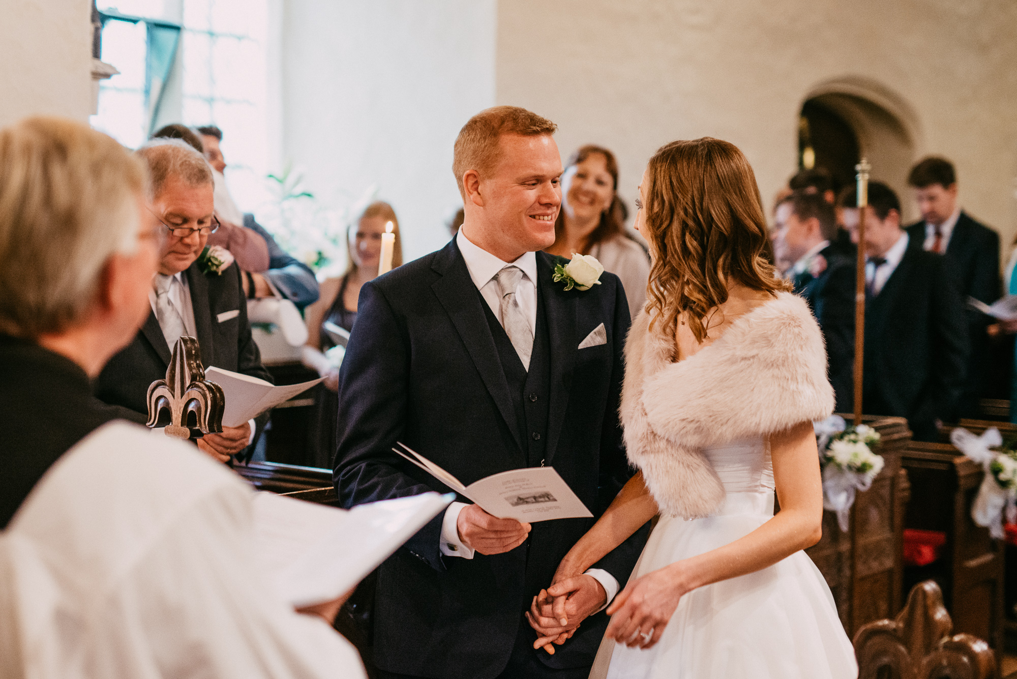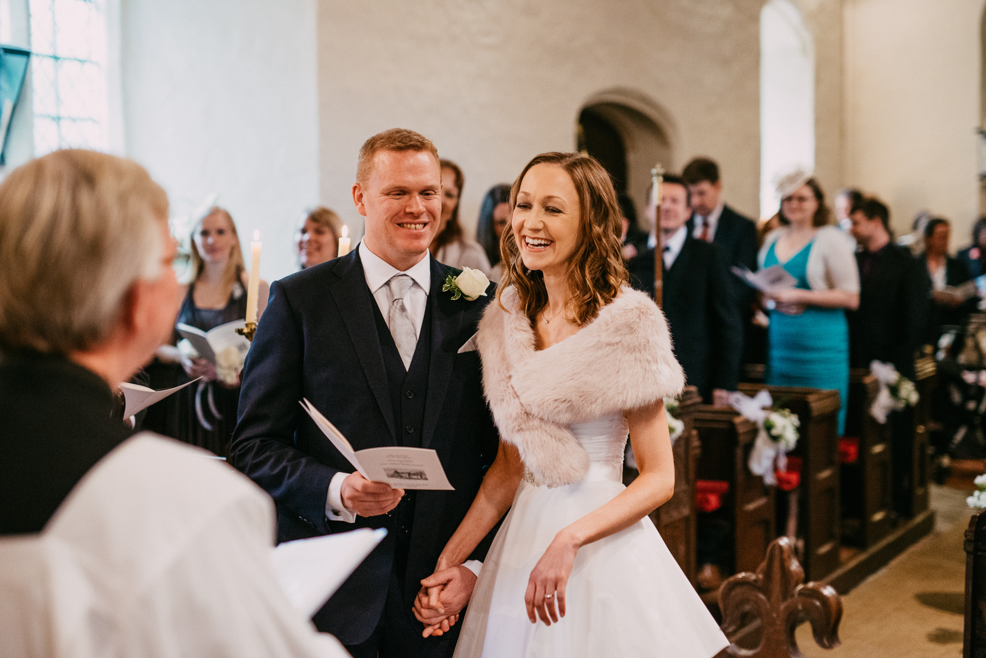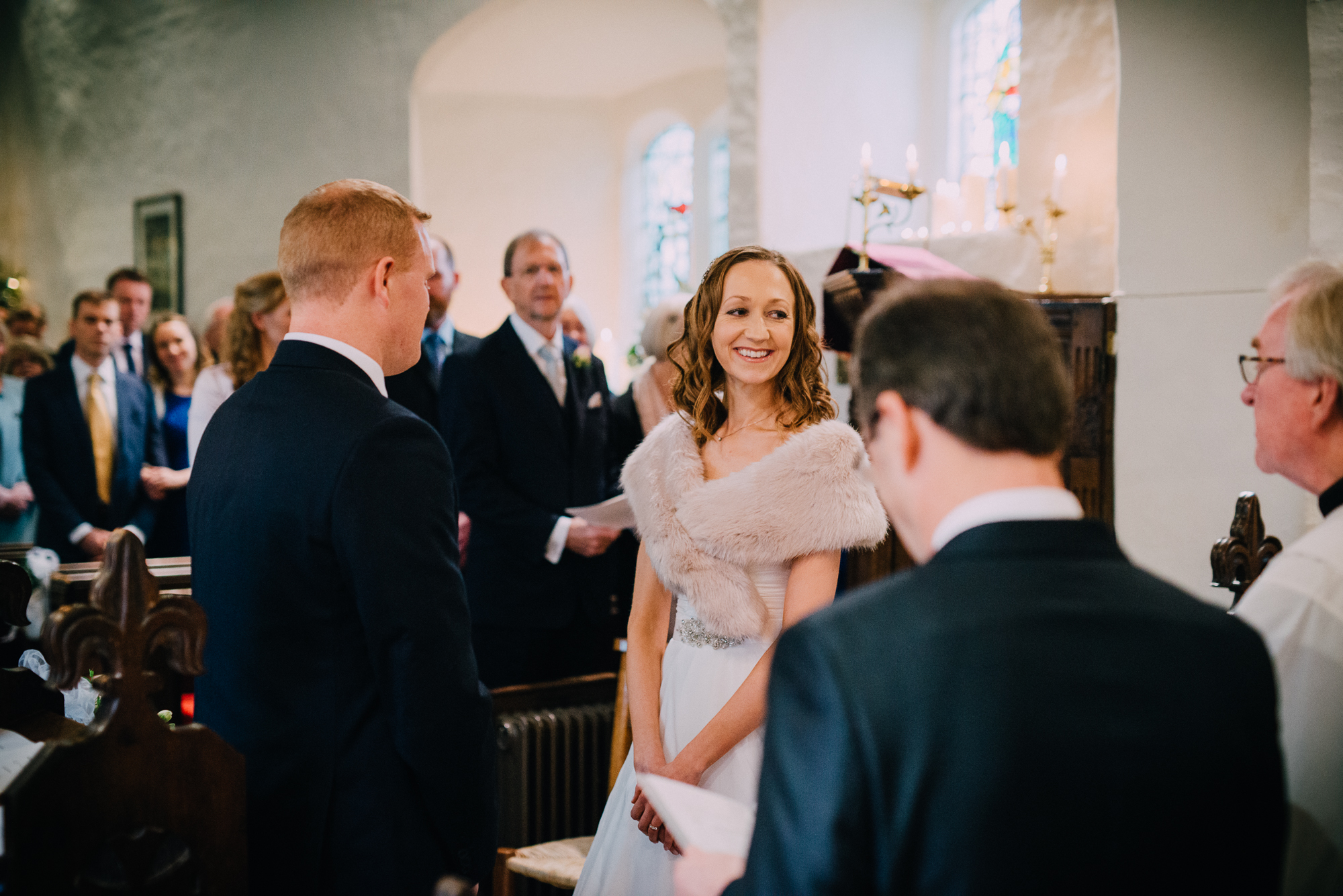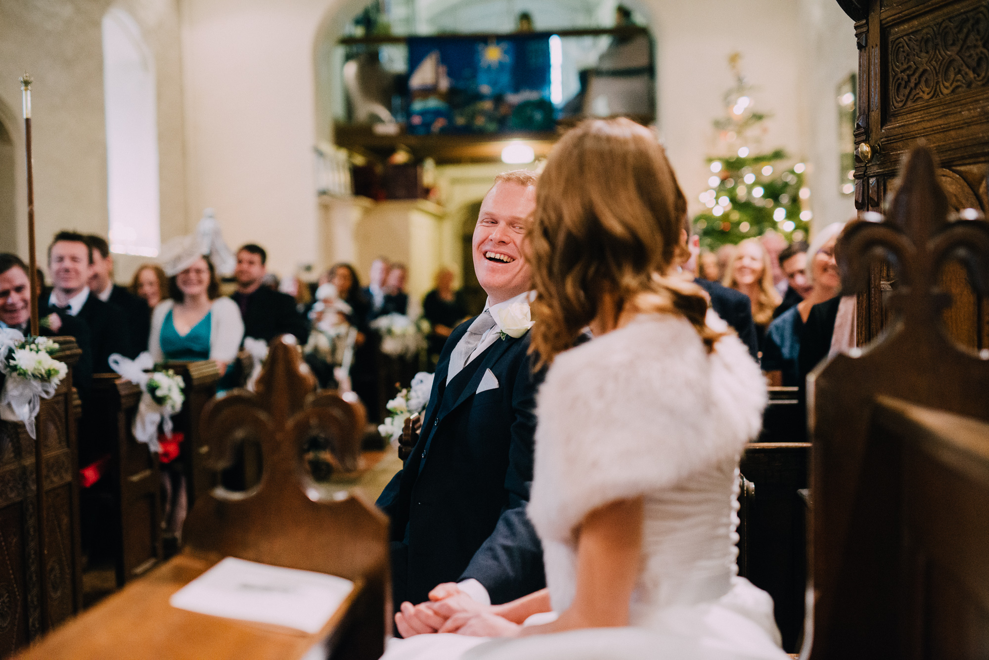 The day started at their home in Shoreham-by-Sea where I got some nice natural photos of Jen getting ready with her sister, parents and bridesmaids. We then headed en masse to Jim’s local church, St Peter’s in Twineham. The ceremony was one of joy and high emotion, and was particularly notable for the Christmas carols (including descants). There was even a cameo performance from Jim’s mum on the church bells (she had been touring the area practicing in secret for months in advance).